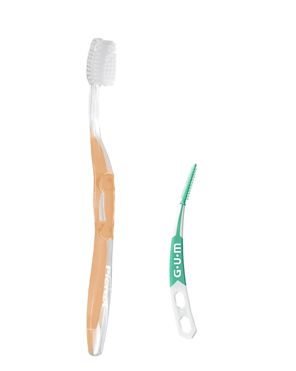After surgery following the Instant® protocol, the patient receives an Instant® post-surgical toothbrush with extra-soft bristles, a straight profile, and a flexible neck, designed to adapt to the oral cavity and allow gentle, comfortable, and safe brushing.