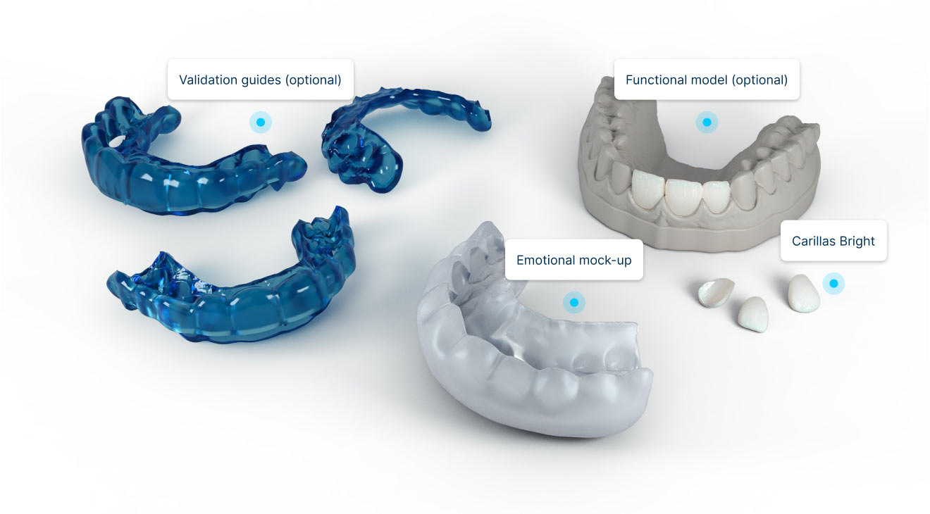 La propuesta de la nueva sonrisa Bright se recibe en forma de mock-up, y con unas herramientas sencillas y fáciles de utilizar que permiten testar y crear la atmósfera necesaria para emocionar al paciente.