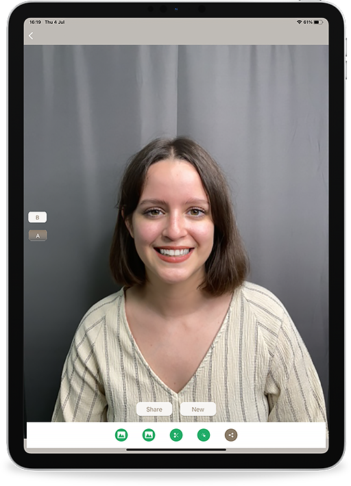 A través de la App Bright podrás comunicar, hacer participar y alinear las expectativas con tus pacientes de una forma fácil, visualizando un primer impacto de lo que le supondría su nueva sonrisa. Es el primer paso para comunicar y emocionar. Todo ello utilizando desde un inicio el algoritmo y las librerías que mejor se adaptan a tu paciente y que van a ser utilizadas para la creación de Bright y que aproxima el mock-up al resultado final.