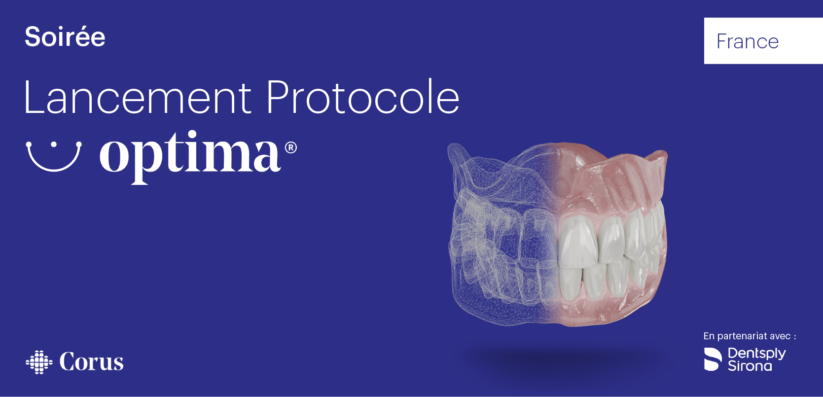 Venez rencontrer Optima ! Participez à notre prochain cocktail, où nos experts vous présenteront la nouvelle solution prothétique amovible de Corus.