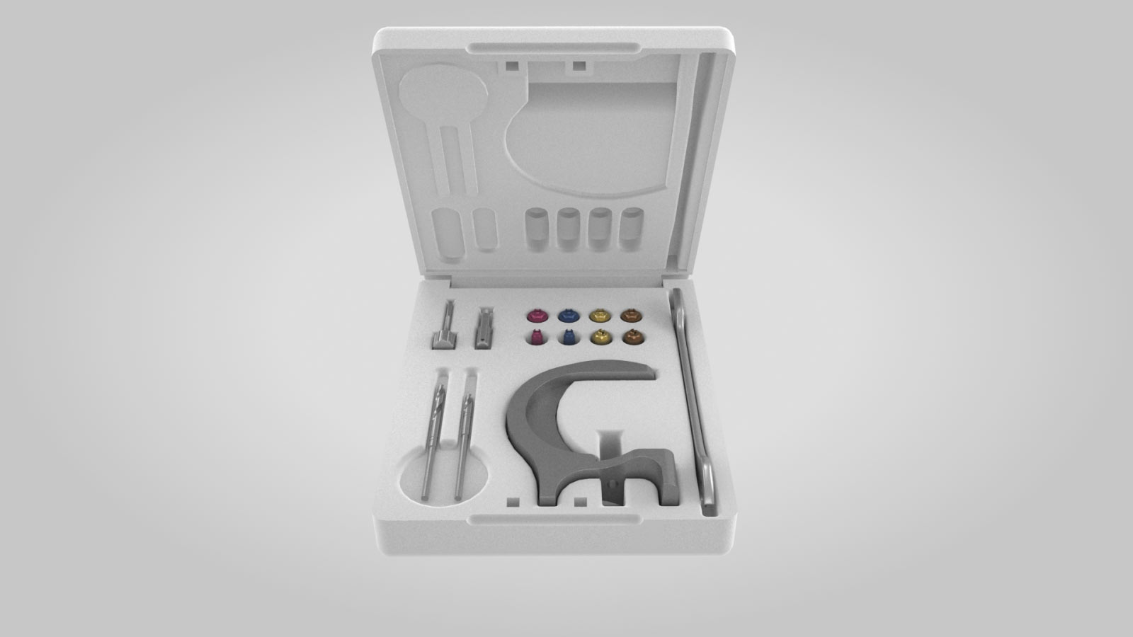 Hvert Instant-tilfelle leveres i en boks som inneholder alle nødvendige komponenter: Tannprovisorium, Posisjoneringsguider, Kirurgisk guide (hvis aktuelt), Perio-Aid gel, Instant-abutments, Resin-abutments og Skruer.